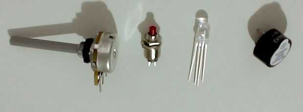 -En la parte plana del led encontramos el pin rojo, luego el ánodo común, pin azul () y el pin verde. Deben ser conectados como se muestra en el esquema.