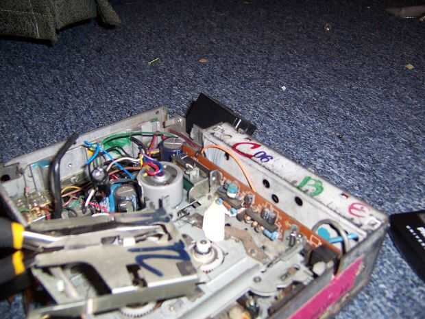 Desenroscar los tornillos visibles y eliminar partes que soltarse. Girar sobre el reproductor de casset y quite los tornillos de la parte inferior de la placa de circuito y de los lados.
