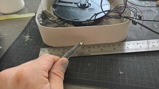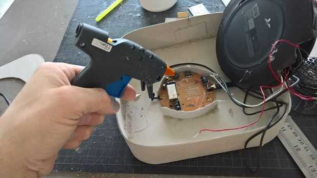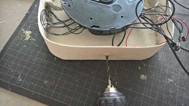 Marque y perfore un agujero para el cable de interruptor y fijar con pegamento caliente.