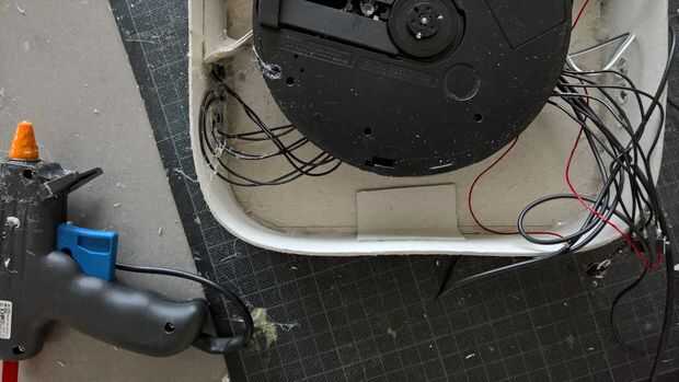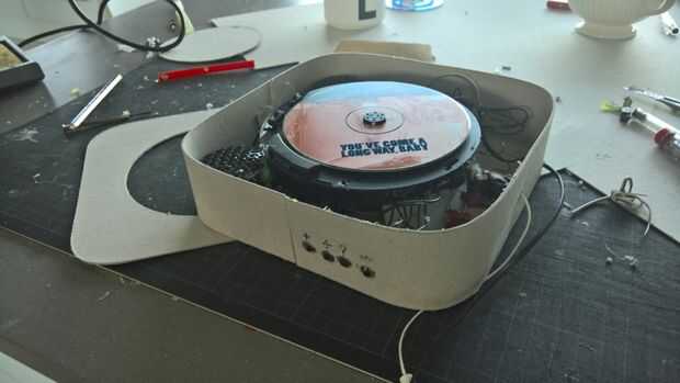 Adhiera el amplificador, hacer algún soporte de cartón para elevar el reproductor de cd y luego péguelo en su lugar, trate de colocar esto en el centro se verá mejor, y obvio si no es. (que puede se de mi objeto)