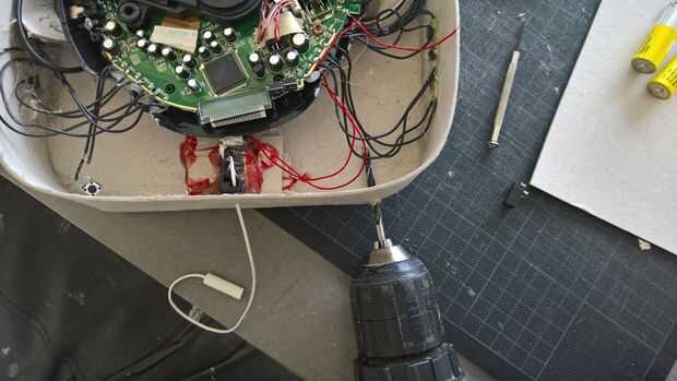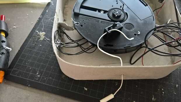 Pegue los botones y el interruptor de cable. (con algunos agregado cartón como soporte)
