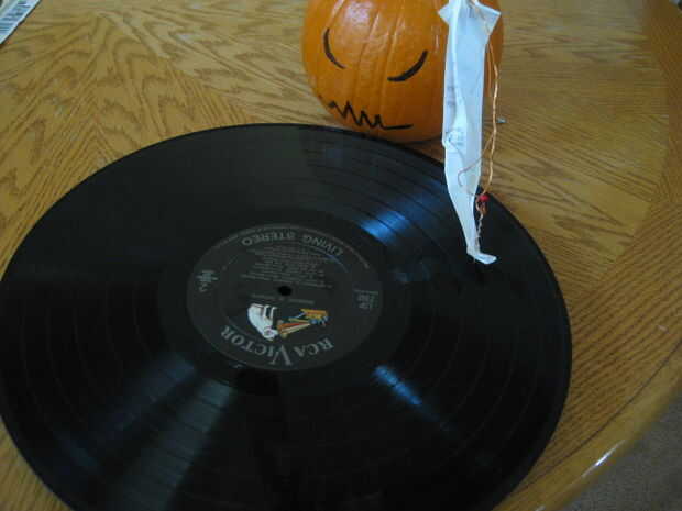 a continuación coloque la calabaza cerca del registro y su aguja y altavoz. necesita tener suficiente presión empujando la aguja en el disco para seguir los caminos pero no demasiado donde tocará el registro el motor. por eso usé el alambre de cobre, porque es fácil de ajustar.