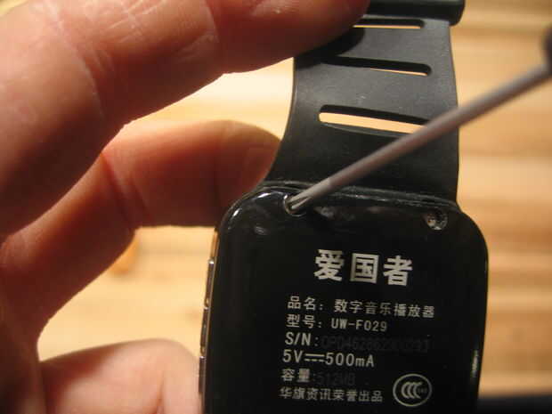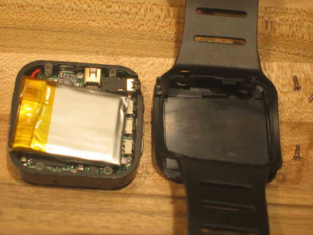 Quitar los cuatro tornillos en la parte posterior del lado y retirar la cubierta posterior. Tomar la venda de reloj y guárdelo en un lugar seguro en caso de que alguna vez desea volver a esta cosa en un reloj de pulsera en algún momento.