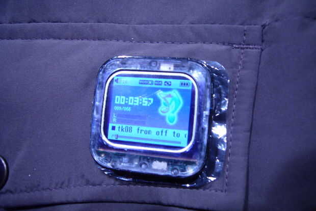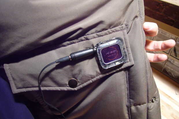 Coloque el reproductor sobre los tornillos y atornillar en su lugar. Listo. Lo hice en un chaleco porque eso es lo que yo he estado usando últimamente, pero que podría funcionar igualmente bien en sudaderas, abrigos, sombreros, calcetines, ropa interior, etc.