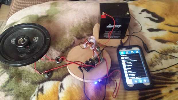 Conecte el amplificador al altavoz de su elección y la batería. Usé el Dayton Audio clase T DTA-2 por varias razones.