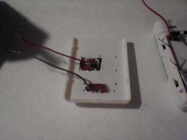 luego dremeled hacia fuera dos aberturas en la parte posterior de la diapositiva abierto para dar cabida a los dos conduce y pegado a la célula solar en la parte posterior.