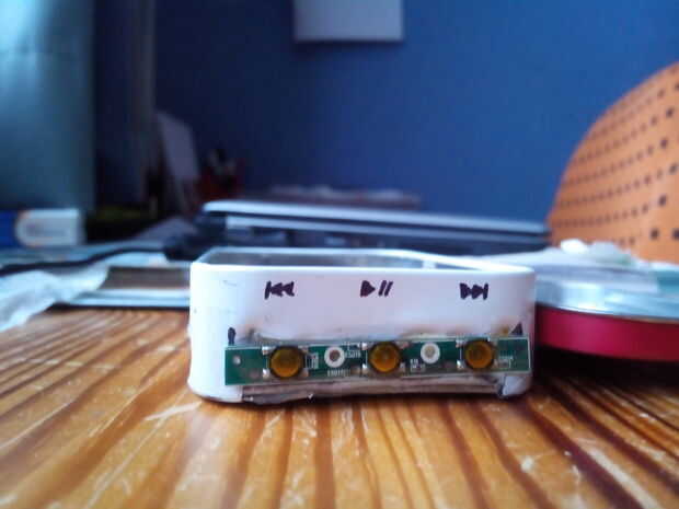 esto es un apoyo para un video futuro. Qué es una cubierta de plástico que me convertí en un collar que esconde un reproductor MP4.Paso 1: Para hacerla, primero aerosol pintado la concha de oro, entonces después de que seque cuidadosamente archivado