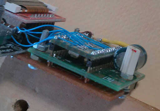 Tiras de cabecera para Teensy 3.1 Junta de soldadura como se muestra, luego empuje los encabezados a través del adaptador de audio. Compruebe cuidadosamente que las etiquetas de pin corresponden correctamente y luego soldar los pines necesarios al otro lado del adaptador. Tenga en cuenta cuidadosamente la orientación relativa de los dos tableros, con el Teensy boca abajo. Si conectas el Teensy lo contrario a muchos de sus pines son inaccesibles. Tenga en cuenta también que un poco de espacio quedo entre las tablas para que el interruptor de arranque de Teensy puede funcionar (con un destornillador pequeño). La ranura micro-SD es visible aquí debajo el adaptador de audio.