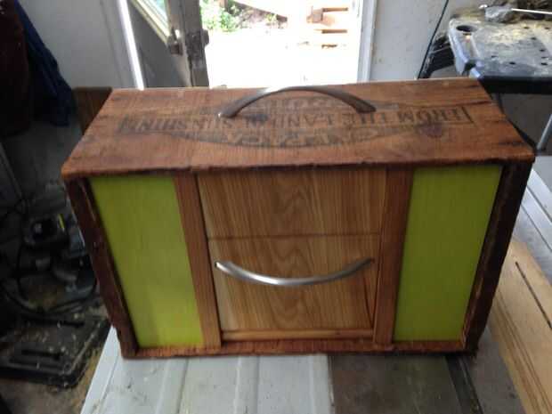 Tenía una caja de fruta 100 años de edad con sin fondo, que mi esposa no me deja tirar. Añadido algunos castaños y pintados de contrachapado de abedul y algunos hardware de cajón. Construcción de cuadro muy personalizado, para no entrar en mucho detalle.
