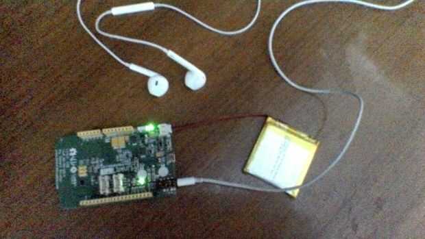 Conectamos los auriculares a LinkitONE para escuchar algún audio cool.