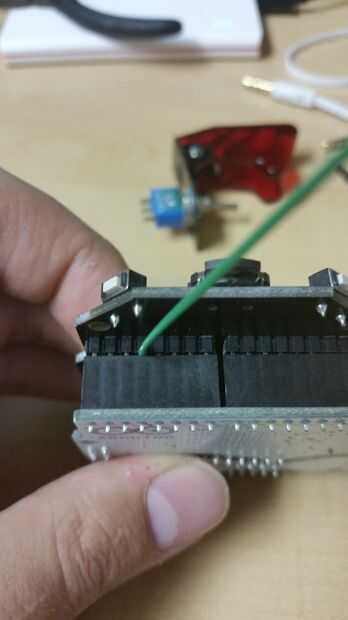 Con el pin del hilo de su conmutador se puede conectar en el espacio que dejó vacante. Finalmente encontrar la manera de cablear el interruptor a tierra, utilicé un lugar vacío en el escudo que se supone para apoyar un conector de 30 pines para iPod y el escudo encima del Arduino de la palmada.