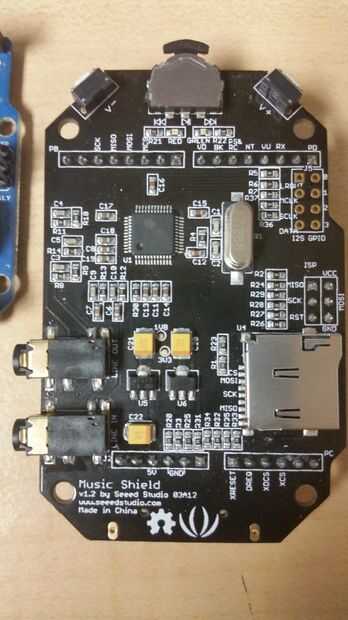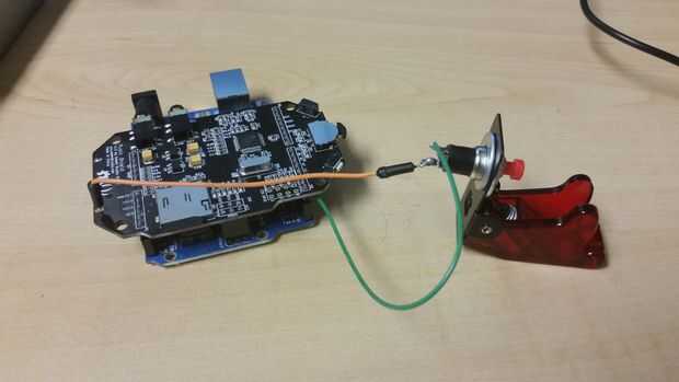 Se trata de una generación de hardware bastante luz ya que el escudo de MP3 contiene casi todo lo que necesitamos. De hecho usted puede incluso salir con no hacer nada pero colocar el escudo de la música y encender el tablero si lo desea. Si quieres un poco más estilo aunque usted puede fácilmente conectar un interruptor de diverso estilo, en mi caso un botón con un rojo interruptor de tapa.