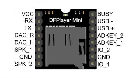 El módulo reproductor de mp3 es capaz de reproducir música, no es necesario un Arduino para hacerlo. Lo único que necesita es una fuente de alimentación de 3.3V-6V, que está conectado a VCC y gnd en entradas / salidas.