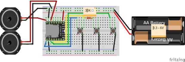 para controlar el reproductor de música, necesita botones. Las salidas de IO_1 y IO_2 son fáciles de conectar. Dan un voltaje predefinidas, que tiene que volver a la entrada de gnd del módulo mp3. El botón play/pause es otra historia.