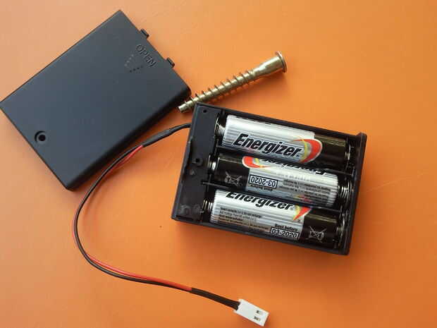 Como se muestra en las fotos que he utilizado una batería 3xAAA para suministrar el jugador. Esto es peligroso! Hace 4.5V usando pilas alcalinas. Para evitar la quema de las tarjetas de memoria, he extraído una de las baterías el paquete y lo reemplazó con un perno de metal. :-).