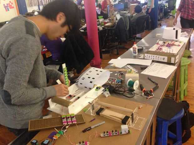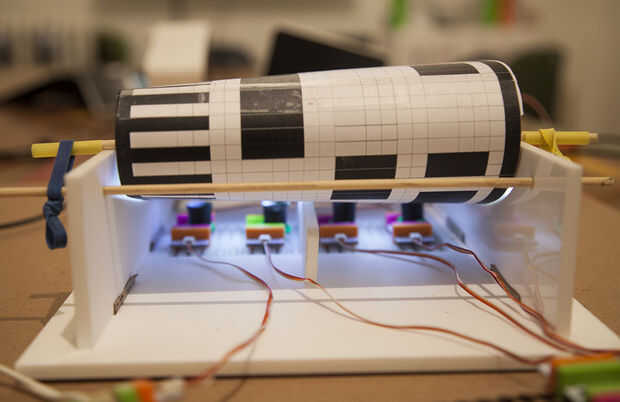 La barra de luces es simplemente una hilera de bits LED que sentarse directamente sobre los bits de activación de luz y brillo abajo en ellos. A la barra de luces de una tira de tablero de la espuma y utiliza una banda elástica para fijar en su lugar.