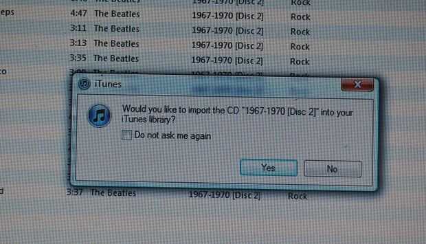Esta casilla debe saltar le pedirá si desea transferir las canciones del CD al iTunes "biblioteca" en su computadora portátil.