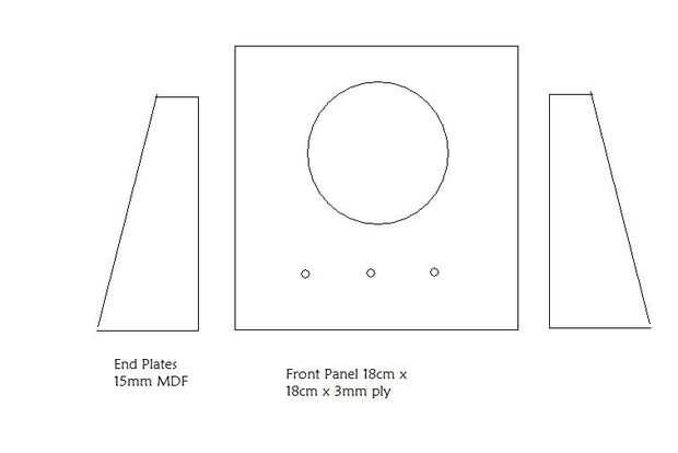 Se trata de un simple altavoz bafle con espalda abierta, el diseño del traste del altavoz fue cortado con una sierra de traste y la placa de circuito y la batería están montados en uno de los stands. La caja acústica está hecha de contrachapado de 3mm y los stands de recortes MDF.