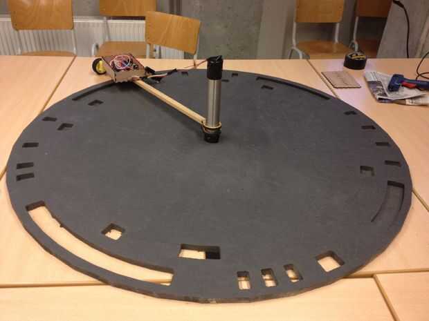 3. bien, ahora la parte difícil: diseño una manera de hacer tu caja con el potenciómetro gire alrededor del jugador de vinyl mega y apoyarse. Por ejemplo: utilizamos una viga que se coloca alrededor del tubo. En el extremo de la viga nos pegan una rueda.