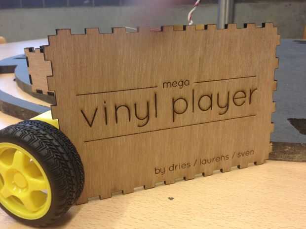 2. después de que ha hecho su diseño plano 2D, utilizar una fresadora grande para cortar su reproductor de vinilo de mega. Para darle una idea de un tamaño: utilizamos 120 x 120 centímetros.