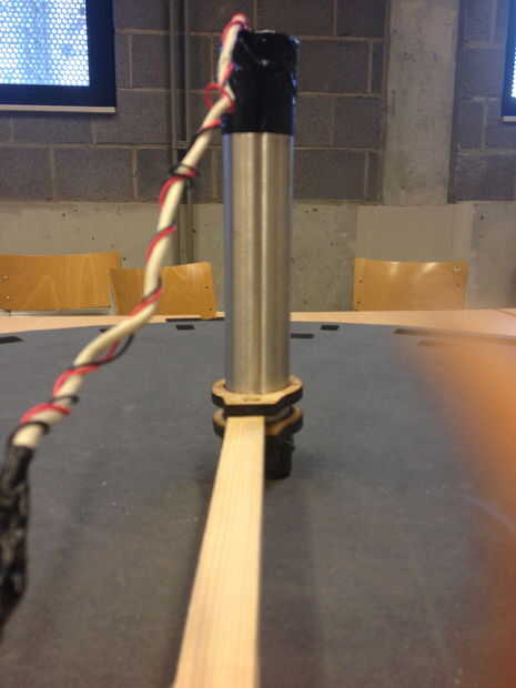 5. llevarla todos juntos! Cuando hayas pegado el potenciómetro en el cuadro, conectarse un pedazo de madera y agregue un cierto peso, por lo que siempre cae cuando hay una diferencia en altura (véase los cuadros). Puede utilizar el lasercutter para hacer su caja, pieza de madera...