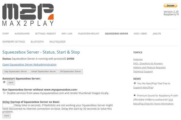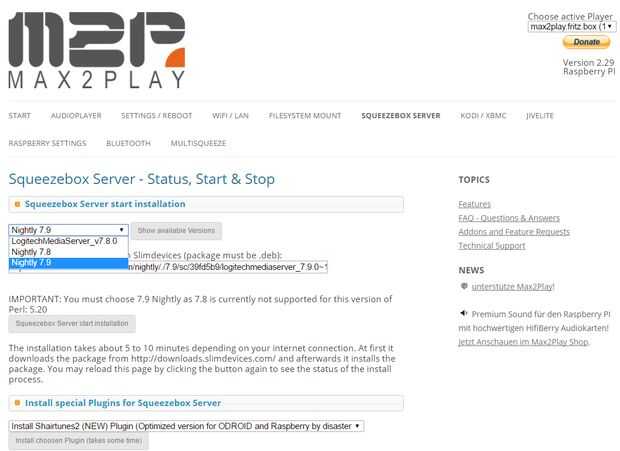 El servidor de Squeezebox constituye la base de nuestro sistema de cuartos múltiples. Aquí, todos los diferentes actores, arroyos y música confluyen y pueden controlarse mediante la interfaz de su elección. El servidor se instala con sólo un clic de nuestra interfaz web.