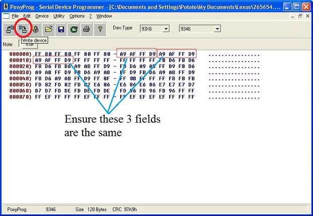 Haga clic en el botón izquierdo superior segundo para escribir el nuevo archivo editado para el chip. A continuación, haga clic en editar, comprobar para verificar que la escritura era acertada.