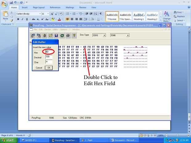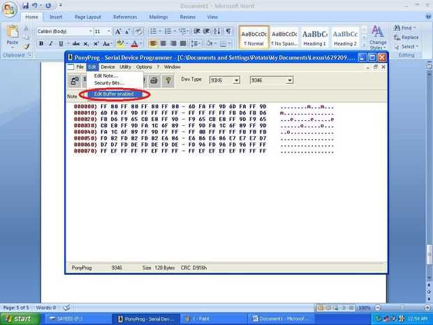 En mi caso, la lectura deseada es 265, 650km, que corresponde a A9 AF FF D9. Tengo que sustituir los valores hexadecimales de cada uno de los tres puntos se repite en el código de la EEPROM. Haga clic en editar y después editar búfer activar en PonyProg para habilitar la edición. Buena idea si usted guarda el chip original de la descarga en caso de que algo llega en mal estado durante la edición.