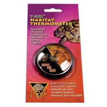 Un termómetro (o varios) le ayudará a inspeccionar el calor adecuado en distintas áreas del recinto del reptil. Puesto que los reptiles son de sangre frío y deben regular su propia temperatura corporal, una zona cálida y una zona más fresca dentro de la caja (también conocido como un "gradiente térmico") es esencial. Con termómetros, puede rápidamente una zona de la jaula una ojeada, decidir si es o no la temperatura suficiente y realizar cambios si es necesario (como una luz en movimiento a un ángulo diferente o reemplazarlo, moviendo decoraciones jaula alrededor, convirtiendo el calor hacia arriba o hacia abajo). Por lo general, uno debe colocarse en el área más caliente de la jaula y uno en la zona más fresca.