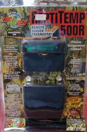 Los termostatos son útiles ya que no permitirá que el recinto a obtener por encima de cierta temperatura donde se coloca el sensor. El termostato se encuentra a una cierta temperatura óptima, el sensor se coloca en algún lugar dentro del recinto de reptil y hará que el aparato de la calefacción activar o desactivar para mantener la temperatura adecuada. Estos son útiles en algo como algunos tanques anfibios cuando el animal no requiere un gran gradiente térmico o para tomar el sol, pero necesita mantener una temperatura global. Usted no quiere utilizar un termostato al controlar un dispositivo tal como una luz ya que puede causar a los reptiles ciclo día/noche natural a ser confuso. También no quiere utilizar esto con algo como una estera de calor, cable de calor o piedra de calor. Si el reptil va a realmente poner en o toque el aparato de calefacción, utilizando un termostato hará que el dispositivo se calienten demasiado, potencialmente quema su animal.