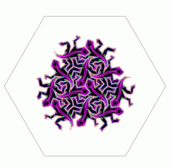La fácil manera es simplemente coloque tantas formas de reptil entero en el hexágono como sea posible, en lugar del negocio entero aplanar-y-trim.  Esto será muy rápido y fácil, pero definitivamente le dará un aspecto diferente.