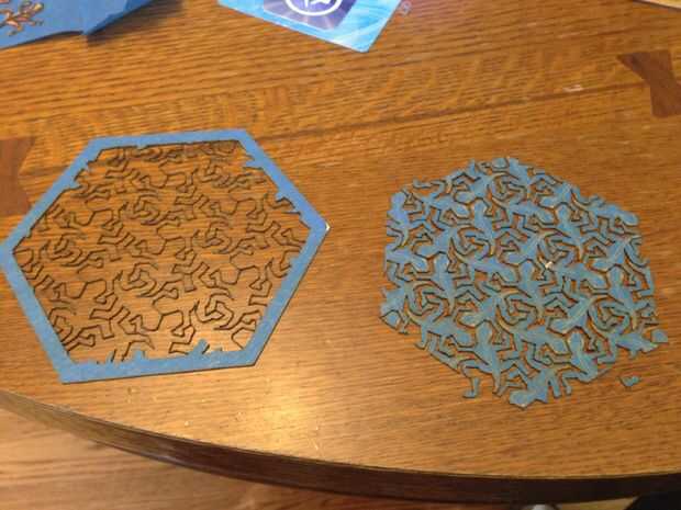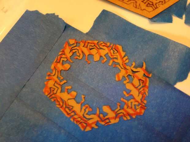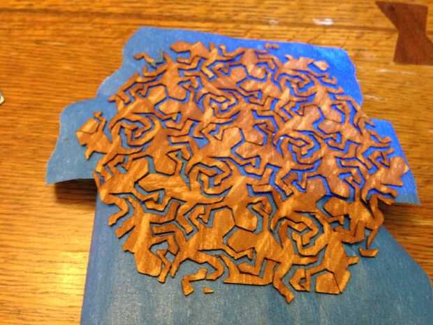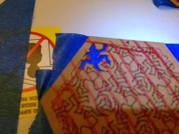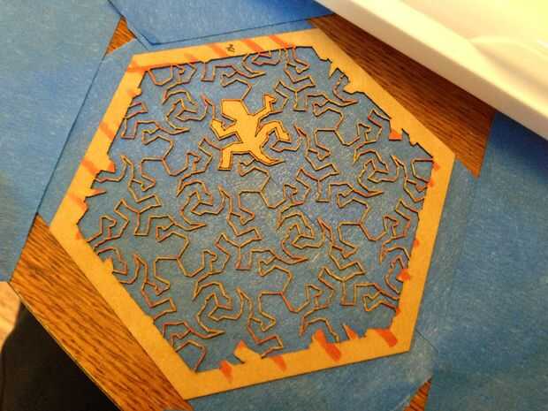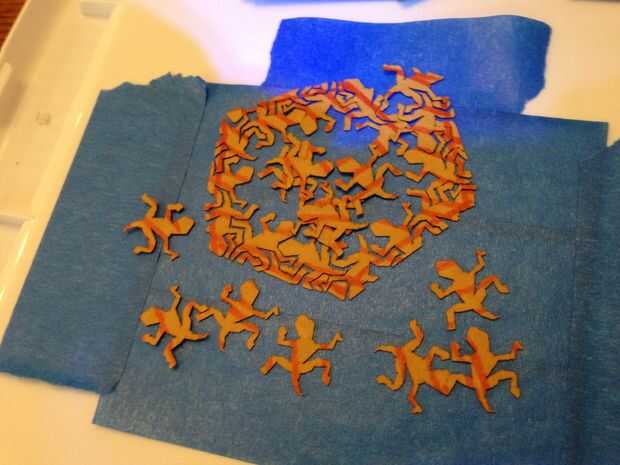 Toma chapa A. QUITE TODOS LOS REPTILES. Terminas con un trabajo bastante impresionante entramado de chapa y un montón de reptiles de tipo A. Use cinta azul invertida para sostener a todas las piezas que has quitado. Cinta la cinta azul de boca abajo a su mesa para que tenga un lugar para ponerlas.