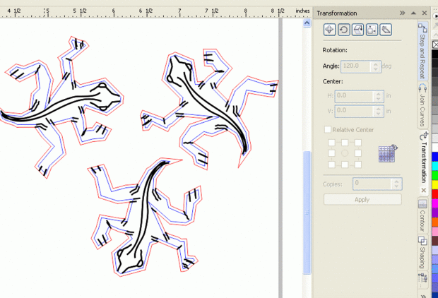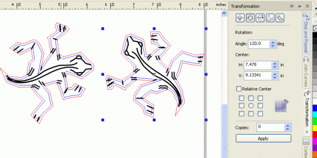 Esto le da la base para crear tu mosaico. El truco para colocación de precisión a estar en la selección de herramientas y elegir una nodeon el reptil rojo (decir el nodo de la nariz) y alineados con el nodo correspondiente en el siguiente reptil. Corel es bastante agradable y se auto-snap en el lugar correcto. (ver última imagen en este paso).