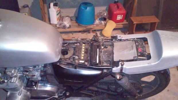 Determinar cómo eliminas tu asiento. Te recomiendo un manual de reparación para su ciclo particular. Como mina está diseñado para girar la batería y acceso de la herramienta, es una simple cuestión de quitar 3 chavetas y tirando el hardware de la bisagra.
