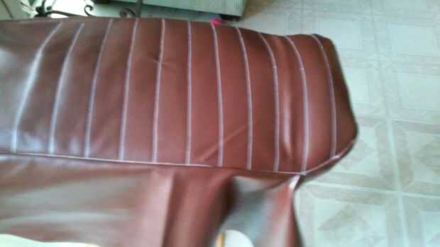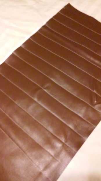 Después de que tenía la parte superior cortada (áspero) até tiras largas a lo largo de los lados. Es difícil explicar el tamaño exacto, porque cada asiento será ligeramente diferente, y el vinilo que utiliza estirado un poco.
