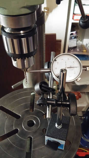 Inserte la canilla en el taladro y volver a montar la palanca y resorte de retorno. Prueba la nueva tirada con un indicador de cuadrante para funcionar hacia fuera.