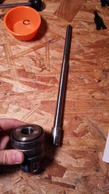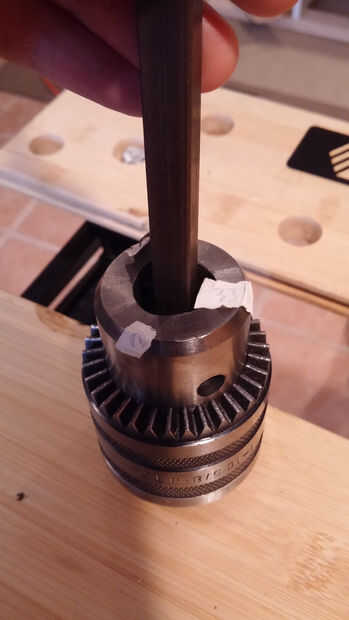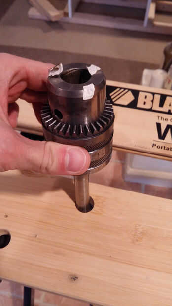 Descansar el portabrocas en algo por lo que el árbol es libre. Coloque un objeto metálico a través de la parte superior de la tirada y golpee el eje hacia fuera de la parte posterior del plato. Se trata de la forma cónica de Jacob.