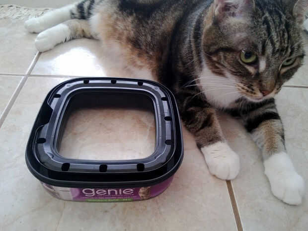 El genio de la basura es un gran producto pequeño que le permite mantener gatos sucios en un cubo libre de olor hasta que esté listo para deshacerse de él. Funciona realmente bien, en parte debido a las bolsas especiales que evitan que el olor que se