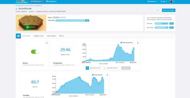Ir a la página web MCS y compruebe su nuestro dispositivo de prueba, usted puede hacer clic en el botón para controlar el relé y ver los valores de los sensores así como la imagen siguiente muestra.