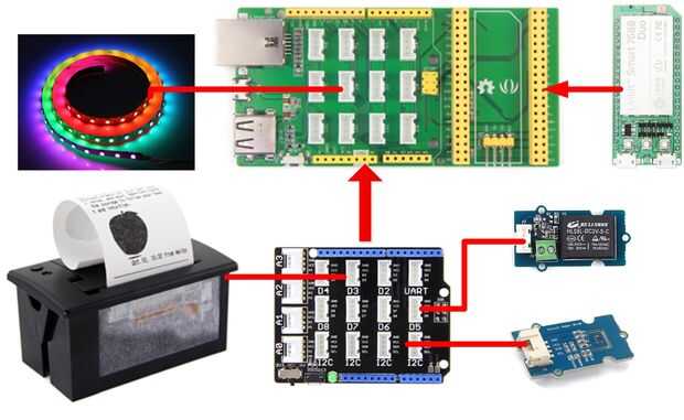 Ahora, debemos conectar los módulos de Grove para el desglose de Arduino para LinkIt Smart 7688 Duo solo como se muestra en el cuadro a continuación.