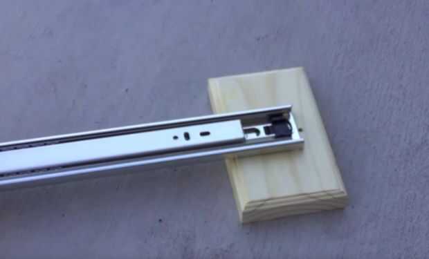 Primero Monte la corredera de cajón/armario en un bloque de madera o una pieza de la duela en los dos extremos, simplemente girando el regulador a la madera.