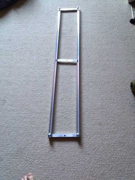 1, 8' pedazo de 1/2" canal de aluminio C 1, 2' pieza de 3/4" de aluminio plana bar 5, 1/4" tornillos con arandelas y tuercas 2 patín carros 4 ruedas de patines