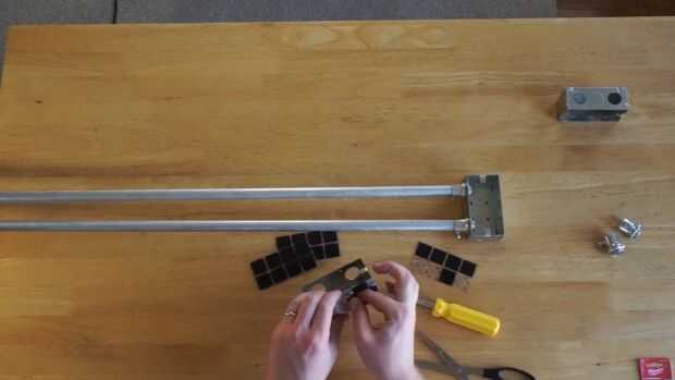 Así que vamos a tomar nuestro Velcro suave y enróllelo alrededor de las aberturas de cuatro hoyos. Puse la tira 1/2 pulgada en la parte inferior y una franja de 1/4 de pulgada en el lado. Hacer por los cuatro orificios.