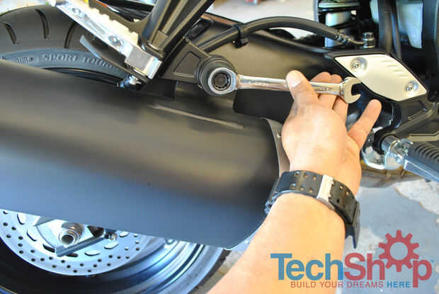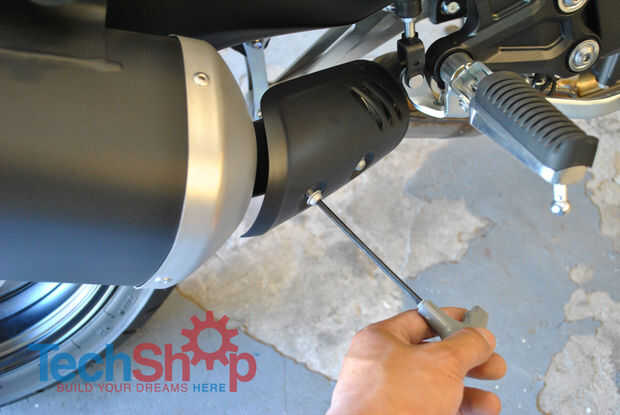 Después de eso, desatornillar el escape desde el Monte de gancho del escape.