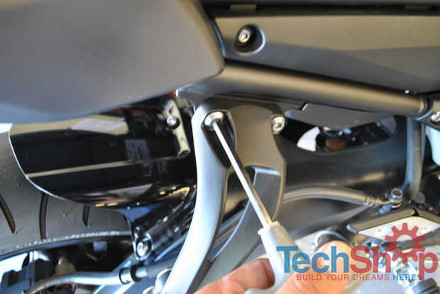 Primero, quitamos el reposapiés pasajero que también es un gancho del escape.