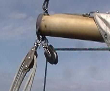 Un cabrestante y bloques son útiles para recuperar a una víctima inconsciente o lesionada. En un velero, la pluma puede usarse como aparejos de elevación como se muestra. De una lancha motora, un pescante del barco puede estar disponible. Incluso en un barco relativamente pequeño, la cubierta puede ser un metro sobre el nivel del agua por lo que no es una técnica de "rescate de piscina".
