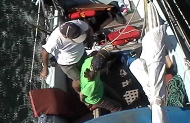 En aguas ocupadas o restringidas (que es en cierta medida una función del tamaño del vaso), puede ser prudente dar un aviso de seguridad, radio VHF, por ejemplo, "Securitay securitay securitay velero Cygnet tiene hombre al agua en la entrada del puerto de Victoria. Los buques no asistir por favor soporte claro". Esto probablemente disparará una larga conversación con la guardia costera, desviación de un miembro de la tripulación de rescate real.
