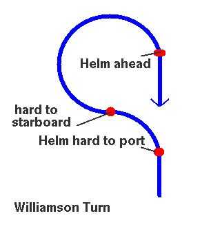 -Poner el timón duro sobre lo contrario y esperar hasta que el barco ha convertido de 270 grados. Tenga cuidado de mantener a la víctima a la vista durante esta segunda vuelta. No cambie la velocidad.