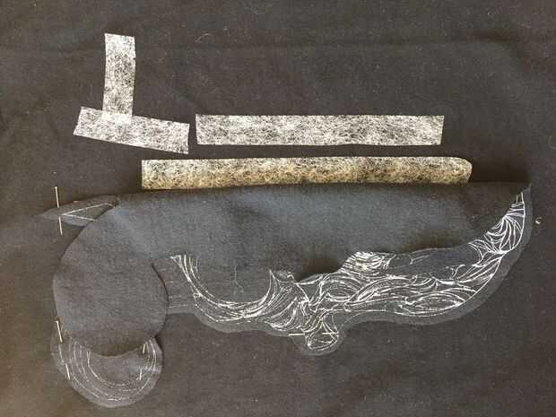 ONU-pin y doble un lado del gráfico a la vez hacer puntada witchery fusión entre camisa y gráfico. Asegúrese de que no fusión es visible. (o se derretirá en la plancha y matar el proyecto)