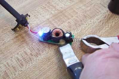 Conectado las pinzas de un cargador de 12 voltios para ver si el LED enciende todavía. El cargador de coche, aún funciona.